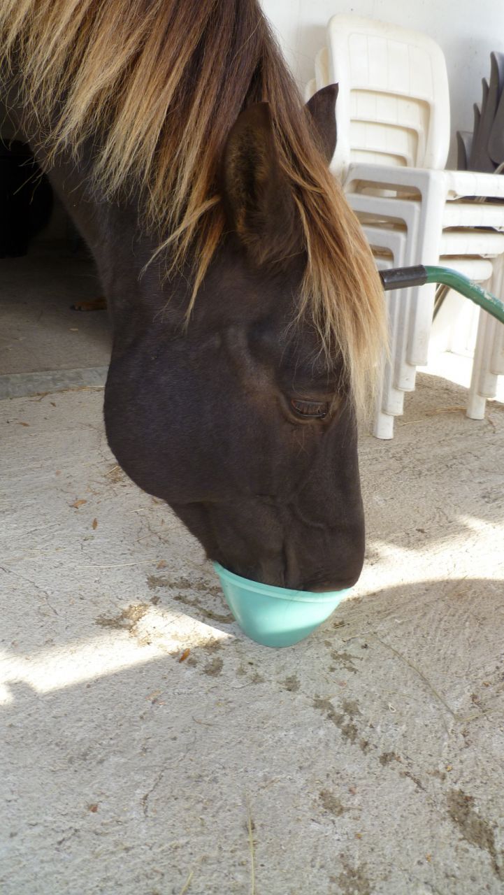 | Dire merci | J'ai testé pour vous... Le cheval qui trouve que c'est toujours meilleur chez les autres... Ici : l'eau...dans la gamelle du chien ! (alors qu'il a son abreuvoir derrière...Of course!) ![]() ![]() |
