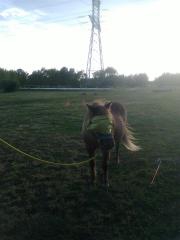| Dire merci | C'est vraiment très drole, c'est léchage automatique dès qu'elle est à poney et maintenant elle commence à faire des tours au pas mais elle a encore du mal à trouver son équilibre |
