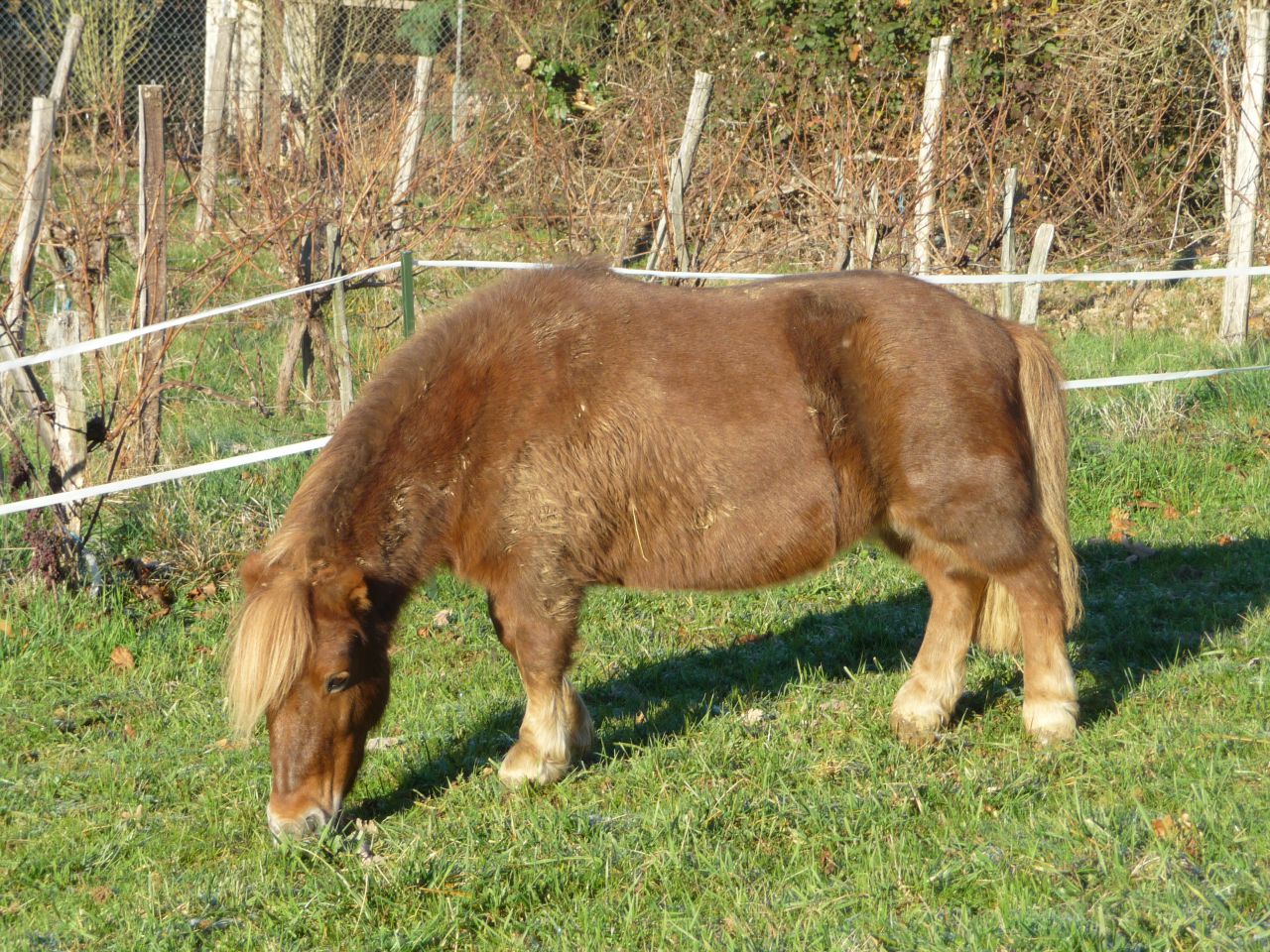 | Dire merci | ma ponette a une malformation qui n'est pas mortelle et qui n'est je ne pense pas génétique car elle a pouliné et le poulain a la conformation parfaite du shetland type quand elle est arrivée chez moi elle marchait trèès lentemant au pas les jarrets collés et les postérieurs écartés énormement toute raide, elle ne savait ni trotter ni reculer. Elle était si peu souple car pas dutout travaillée et passait sa journée au pré devant la boule de foin (elle appartenait à un ami qui est eleveur et a bcp d'espace qui l'avait récupérée à la mort d'une vieille dame et dont les enfants ne voulaient pas des poneys) moi ayant du temps j'ai fait tout les jour des flexions, des petits pas de reculers, balades en main de la longe au pas, qq pas de trot sur route puis en longe et on est arrivé à galoper en longe que à main gauche au début et maintenant aux 2 mains ![]() la jument saute et fait la révérance, defois elle part en balade à pied derrière mon poney pendant plus de 1h30, elle travaille aux longues renes, fait des déplacements latéraux et galope meme avec mon poney et ma ponette et elle m'a meme tiré en "traineau" (mais elle tient pas aussi longtemps ) ses jarrets se sont écartés et ses sabots se sont resserés mais ont doit lui laisser beaucoup de talon au parage derrière pour qu'elle soit à l'aise et puisse marcher sans problème![]() ![]() |