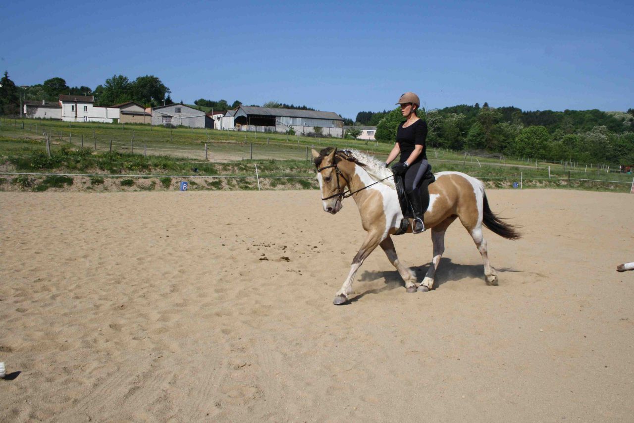 | Dire merci | Ma jument : selle polonais, au pré à l'année avec abri naturel. Foin à volonté, un peu de granulés en hiver. En ce moment elle fait bien 50 kg de plus...Elle fait de l'extérieur, du plat, du trec (on commence) et le saut ce sera pour plus tard, elle a pas mal de choses à apprendre avant.![]() |