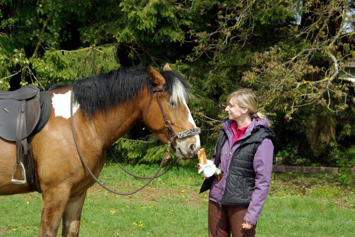 | Dire merci | Oh il est sympa ce post! Voici Savane, OI, mère ardennaise et père heu un truc bizarre avec des taches, elle a 5 ans et demi. Une très bonne louloutte de balade, je 'nai encore jamais fait de rando avec mais ça va venir! SI je pouvais j'aimerai beaucoup me lancer dans le dressage et je suis certaine qu'elle m'épaterait. C'est une "sportive" malgré son gabarit, son allure de prédilection c'est le trot, elle pourrait trotter pendant des heures et fait des foulées de malade ![]() C'est aussi une bonne juju pour les tours de cirque, la liberté, et le trimballage à gauche à droite Mais elle aussi fait travailler les autres faut pas croire! elle oblige la ponette qui partage sa cellule à galoper dedans ![]() ![]() ![]() et nous v'là en train de partager un sandwich au jambon à un ravitaillement d'un rallye de 30km ![]() ![]() |