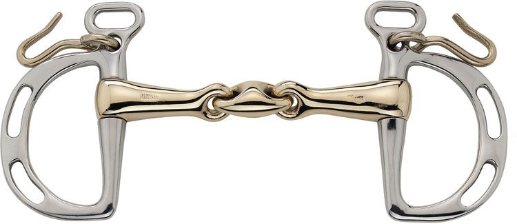 | Dire merci | par contre, pour un cheval qui a reçu des coups dans la bouche avec brisé normal, ça rassure aussi que le filet ait un blocage et ne pince pas ou ne tape pas dans le palais. un cheval qui a l'habitude du mors droit peut aussi avoir la même sensation, bien qu'il bouge aussi dans la bouche, mais ne se referme pas complètement (ce qui est le cas d'un brisé normal) |