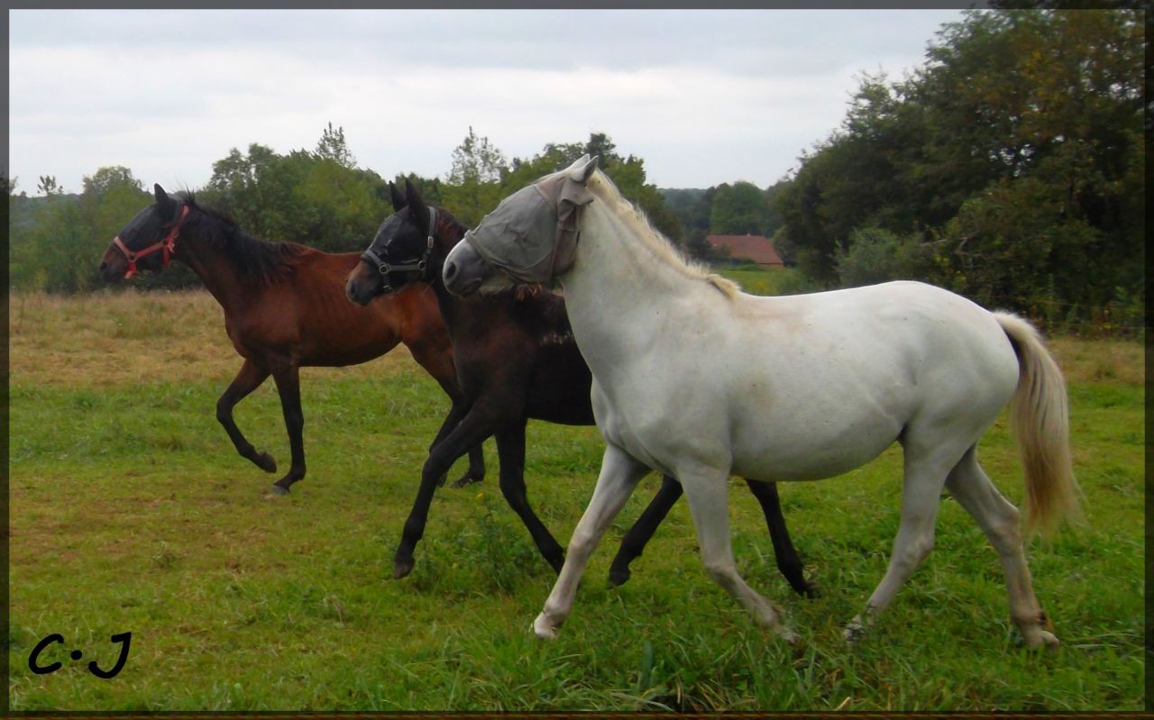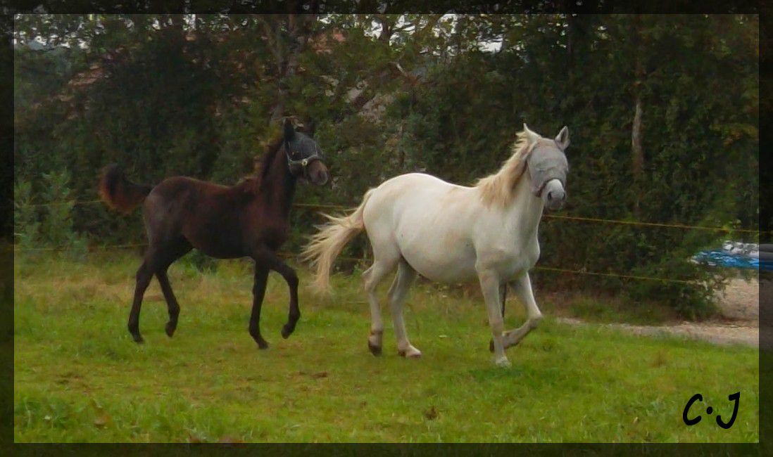 | Dire merci | Génial Crazyhorse, j'espère que tout se passera bien et que tu nous feras de belles photos... Moi, j'ai une petite question, j'ai remonté ma jument dimanche dernier, en laissant la pouliche dans le pré qui jouxte la carrière. La maman a été super, un régal. Mais au bout d'un moment, la petite en a eu marre et m'a défoncé la clôture électrique pour venir nous rejoindre. Je précise qu'il y a bien le jus dans le fils électrique. A votre avis, je dois procéder comment? Car là j'attendais que la pouliche se calme pour rentrer maman au pré, mais j'ai pas eu le temps. J'ai aussi la solution de mettre la pouliche au box, mais j'ai peur que ce soit encore pire au finale.... Ou bien j'attends le sevrage, mais j'ai peur que la pouliche refasse le même cirque avec le cheval du sevrage. |