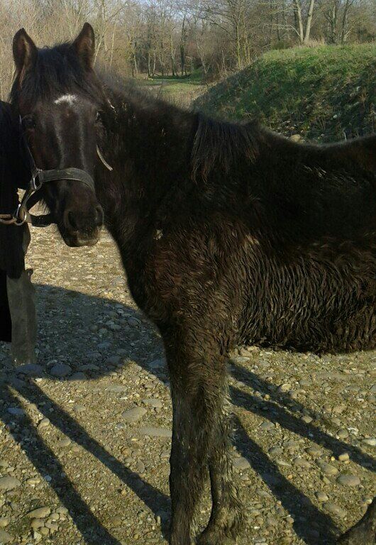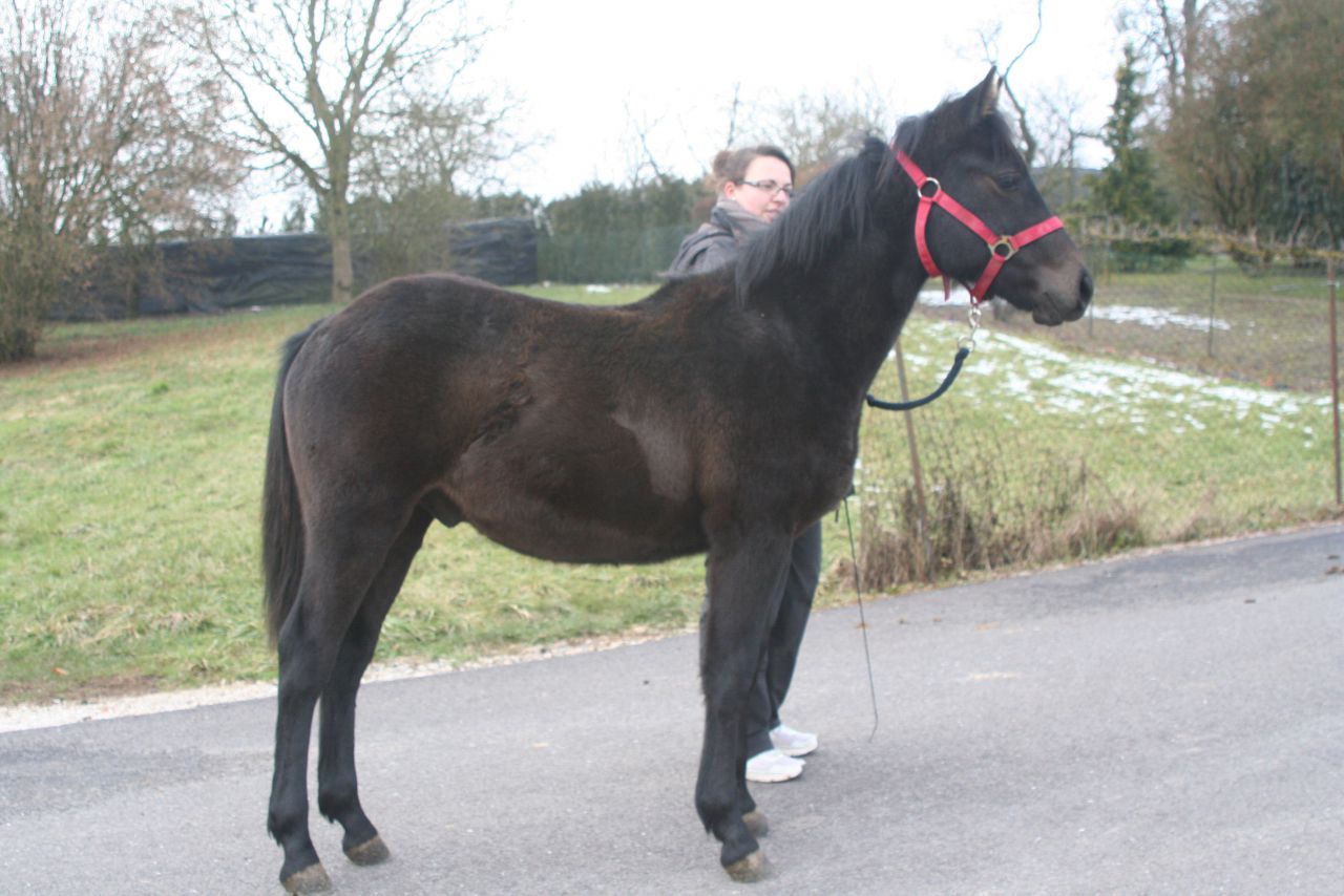 | Dire merci | Ça Alors est bien rentrée à la maison, toute contente de retrouver les copains de pâture ! La encore, monter dans le camion n'a été qu'une formalité, en moins de 2 minutes c'était fait. Attachée dedans, elle n'a pas bougé une oreille, très calme, posée et attentive aux mouvements de la route. C'est vraiment une crème de petit bout de chou. J'ai hâte de retourner en balade en main avec elle parce que c'était que du bonheur ! Elle est plutôt bien proportionnée encore, toute ronde et bien bien poilue ! Je pense que c'est vraiment une tardive parce que pour le moment la croupe n'est pas bien plus haute que le reste et elle doit mesurer à peine 1m30 (maman 1m60 et papa 1m40) Hâte aussi de la voir avec son poil d'été ! En tous cas, je suis super contente qu'elle s'en soit sortie, de plus, elle ne devrait pas avoir de séquelles. |