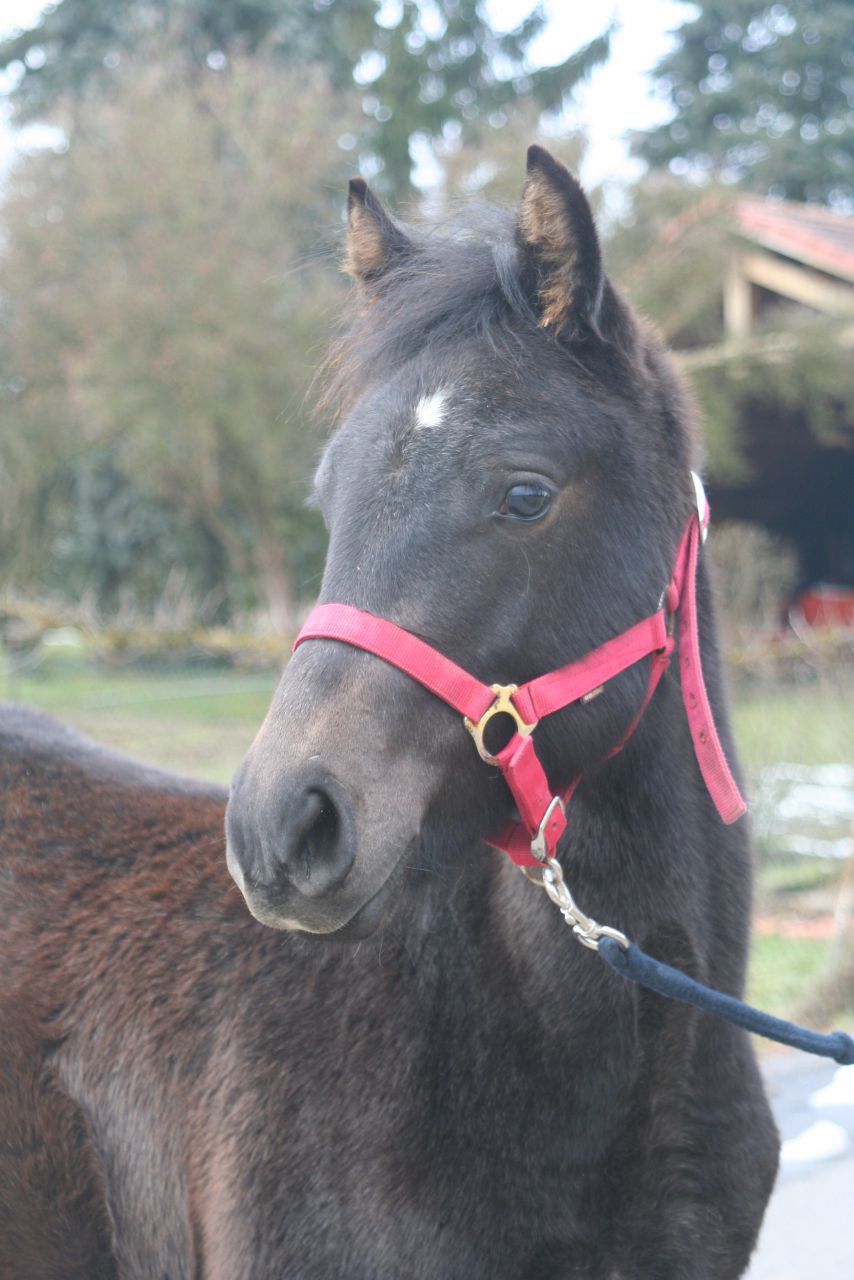 | Dire merci | Non en ce moment elle change pas trop niveau couleur, peut être un peu plus clair au niveau de la tête. J'espère que le sevrage la calmera un peu, car elle a plus de caractère que je pensais. Elle est assez difficile à cerner car a des réactions non logiques (oui je sais c'est un poulain) : Quand elle veut pas le licol, c'est clair... Mais une fois mis, elle est très sage... J'utilise maintenant une longe étho (très longue), elle est plus libre de ses réactions sans pour cela rentrer dans ma bulle ! Bon, on vera quand elle sera avec mon papi, qui lui est d'un calme.... |