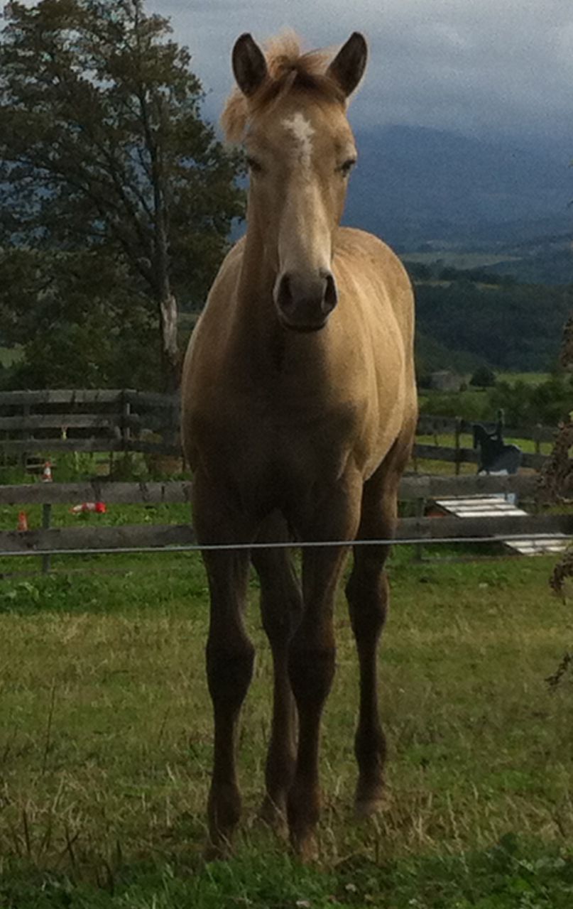 | Dire merci | merci Amélie Oui elle a une jolie couleur, pas forcéement celle à la quelle je m'attendais, mais sa gentillesse prend le dessus sur le reste J'espère surtout ne pas faire de bêtise avec elle, car c'est mon premier poulain à moi toute seule... Pour l'instant ça se passe bien. Je lui fais ses soins aux yeux après chaque repas, à l'attache sans maman et impeccable. Après on rejoins maman qui est plus loin au pré, tranquillement en longe. J'espère vraiment créer un lien de confiance avec elle. |