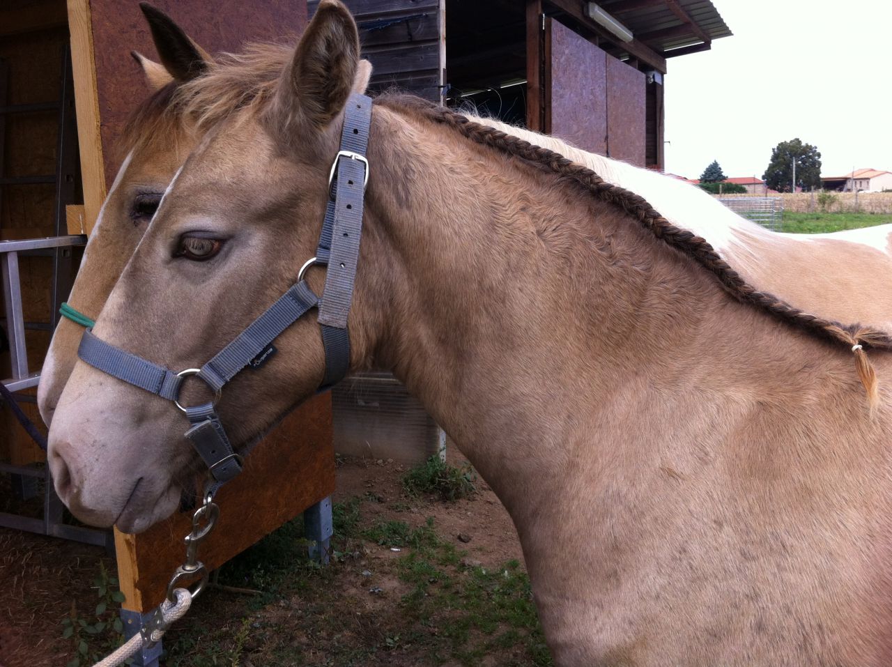 | Dire merci | Aujourd'hui, grand pansage d'automne pour tout le monde. La petite a même eu droit à une petite coiffure car avec la longueur de crin et l'épaisseur, je vais pouvoir m'éclater ![]() ![]() ![]() pourvu que ça dure, mais elle est d' une patience d'ange lors du pansage, parce qu'elle est quand même restait attacher tout le temps où je m'occupais de sa mère, et il y avait du boulot. Elle a aussi été la première à partir à l'attache, attendant sagement que sa maman la rejoigne. Du coup, comme elle a était super mignonne, on a rien travaillé d'autre. |