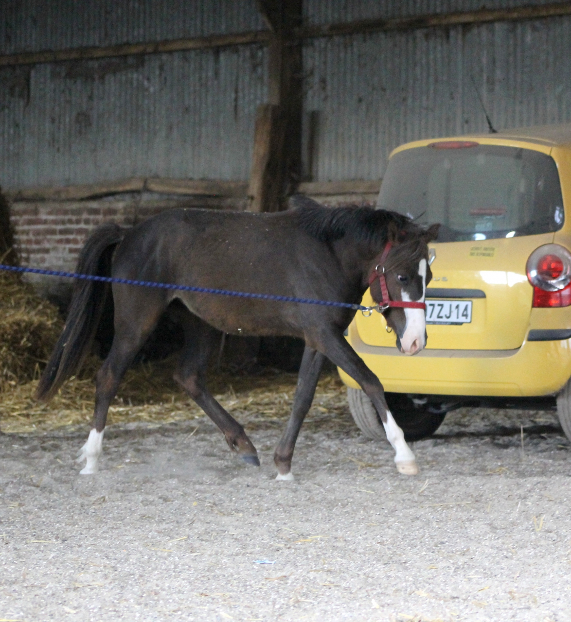| Dire merci | majaffi fait en effet moins poulain! Sahel il est bien joli ton petit père! J'ai essayé de doucher Cajo l'autre jour, un fiasco, je m'y attendais comme c'est de l'eau de puits avec juste une pompe avec un gros débit. J'ai pas insisté comme j'étais seule. J'ai pris un seau une éponge et j'ai voulu faire comme ça (elle connait un peu) mais j'ai eu beau prendre mon temps, elle est resté très casse bonbon et essayait de tirer (oui la bonne idée de l'avoir attaché à une ficelle à foin... ça casse et elle avait bien compris, j'ai donc attaché direct au poteau qu'elle comprenne que non ça casse pas à tout les coup). Donc j'ai stoppé sur quelque chose de positif, pause pour faire descendre la pression, et j'ai retenté en liberté au clicker pour voir... Bah elle n'a pas bougé, prenait sur elle même quand elle était inquiète... J'y comprend rien à ce poney! Sinon hier je suis passée avec un tapis de sol : Lien ça l'a traumatisé! Message édité le 19/05/14 à 10:46 |