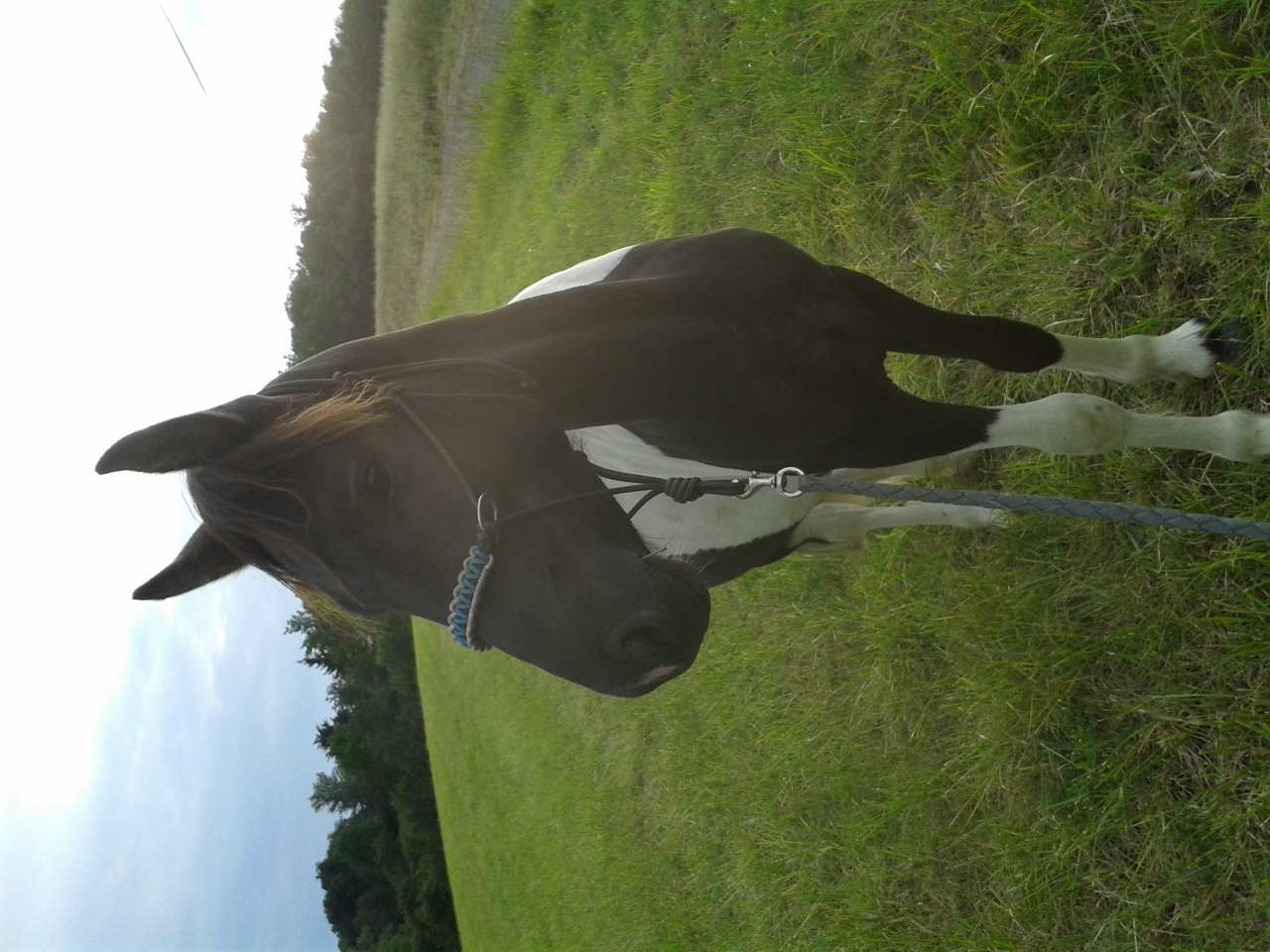 | Dire merci | Rien de bien nouveau ic à part qu'Axius a à nouveau le cul plus haut et est dans une période con-con. Il a défoncé la clôture à l'entrée de la pature et m'a abimé un coude au passage. Rappel à l'ordre et remise au pas en cours...... |