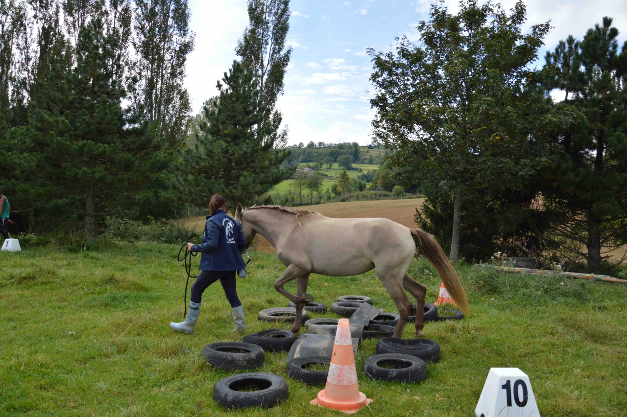 | Dire merci | Ah? J'ai eu 11 tests en tout moi. Mais pas bien compliquée par rapport à ce que j'avais pu voir sur le forum (enfin pas de surprise auditive déjà) : J'ai eu : 1 le van 2 les pieds (les 2 avec une présentation d'élevage à coté avec des poulain qui courraient dans tous les sens...) 3 une descente entourée de panneau de circulation 4 une bâche avec des branches morte dessus 5 un roncier à traverser 6 passer au milieu de panneau et de bidon coloré (là elle a regardé de loin un peu, légèrement hésité et en plus il y a eu une bête qui a détalé dans le roncier mais on a eu 5/5 quand même (ils ont été sympa...)) 7 des gros tronc à enjamber 8 un contrebas suivi d'une montée 9 montée franche bien raide 10 un passage étroit 11 un passage sous des rue-balises Pour la finale il me semble avoir lu que c'était le 30 pour les juniors? (enfin la présentation modèle et allure en tout cas) mais peut être que je me trompe... |