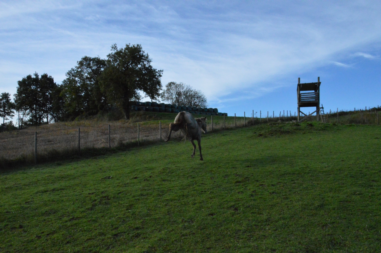 | Dire merci | baldan je ne demande rien en général à mes chevaux la preuve pas de QL, pas de travail en main, rien que dalle la balade en main de Chav c'était suite à la venue d'une copine de retour en france avant justement son redépart pour un an, je voulais lui faire plaisir en la mettant en selle sur Ocre et qui dit sortir Ocre dit sortir Chav, car jamais séparées et vu que je n'ai pas d'autre cheval à monter, autant sortir la merdeuse, elle était d'autant plus ravie mais mon arabe de 4 ans, ben il a jamais mis les pieds dehors sauf pour changer de pré balade en main il sait pas ce que cela veut dire donc bon.... bon ok Chav a déja eu la selle sur le dos pour le fun (sans la sangler) parce que j'avais monté sa mère au pré et qu'elle me semblait intéressée ils auront tous le temps l'an prochain de subir au travail |