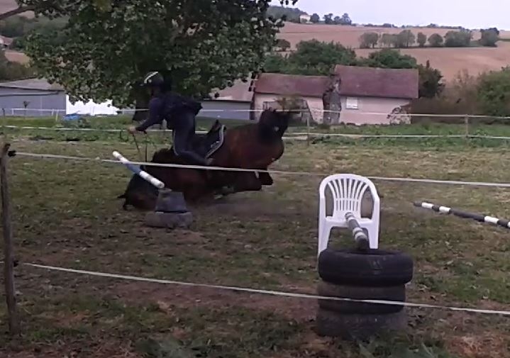 | Dire merci | OUIAI !!! ca faisait quelques années que je n'etais pas tombé, et bien ca fait bizarre et c'est là qu'on se rend compte qu'à 40 ans on a pas le meme corps qu'à 20 ans ! et pourtant j'en ai pris des gamelles à l'obstacle j'ai eu plus peur pour mon cheval que pour moi ! en fait apres ca je suis partie en balade pendant 1/2h tranquillou pour changer d'air afin qu'on se remette tous les deux de nos émotions. et quand je suis rentrée à la maison pour le doucher j'ai vu qu'il saignait du nez ! ca m'a fait flipper , et du coup j'ai couru à la maison pour voir la video et on se rend compte qu'il a taper et trainer le chanfrein par terre , donc je pense qu'avec le choc ca l'a fait un peut saigner. je l'ai surveiller toute la soirée et le lendemain , mais ca va il n'a rien pas de sequelle et meme pas une égratignure aux genoux. heureusement !! et puis ca tombe bien l'ostéo passe demain matin je lui monterai la vidéo comme ca verra ce qu'il y'a a faire par rapport à cette chute ! mon cheval n'a jamais vu d'ostéo de sa vie donc c'est une premiere pour lui, je vous tiens au courant du bilan ostéo ! ![]() |