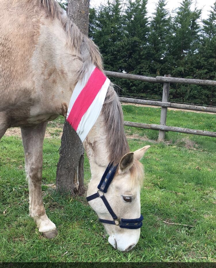 | Dire merci | Bon alors ici apres moults péripéties médicales, on a donc fini à lyon où Crazy avait une grosse inflamation au niveau des lombaires génante surtout à droite, (ce qui concorde avec les manipulations faites par l'ostéo en févirer) Donc infiltrations. Du coup ca a été 1 mois de repos complet, 1 mois de rééducation à la longe et depuis 15 jours je la remonte mais uniquement en balade pour l'instant. Car on pense que ces douleurs lombaires se sont couplées à des douleurs ovariennes... et que c'était trop pour elle, que ça l'a mis dans un état de stress (non visible pour nous) mais lui provoquant des ulceres d'où ces soucis d'alimentation et de perte de poids avant l'intervention de l'ostéo. Du coup pour lui faire oublier la douleur et surtout son appréhension, on fait que de l'extérieur, qui se passe d'ailleurs très très bien, aux trois allures, devant derrière... Peu importe. En espérant pouvoir reprendre le travail en carrière début 2019. Mais ma décision est prise, si elle aime pas et ne veut pas de bac à sable, elle partira au poulinage et restera une jument d'exterieur avec peut être un peu d'endurance pour le plaisir ! |