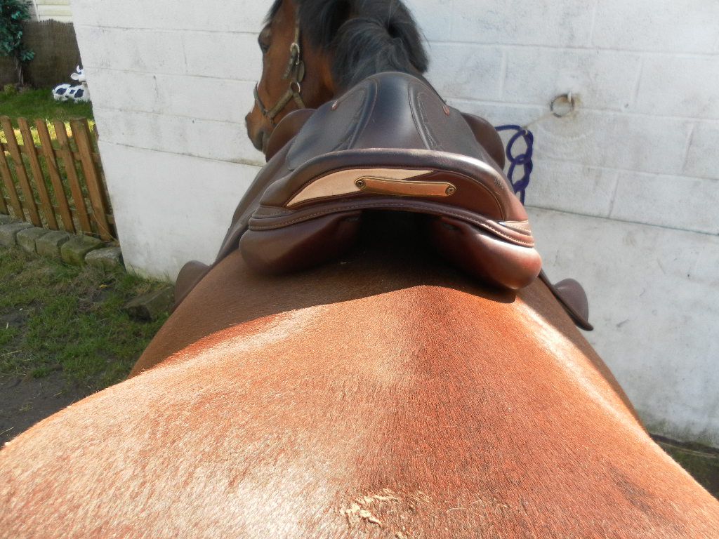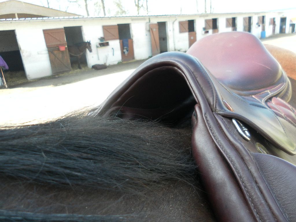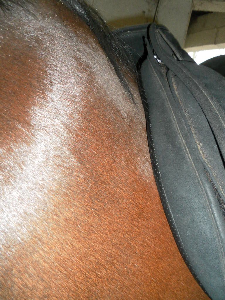 | Dire merci | kosmos : merci ![]() la selle wintec étant mon achat de l'hiver dernier je sais donc maintenant avec le recul les plus et les moins de cette selle les plus : -gouttière très large -légèreté -le grip de la suédine -la bonne position de la jambe en utilisation obstacle ou plat -le cuir des contre sanglons -malgré un siège semi creux le passage de la position assise a en équilibre est super simple - et en général rester en équilibre sur cette selle est d'une facilité déconcertante (d'ailleurs je suis vachement mieux en équilibre dessus qu'avec ma eric thomas 100% cso ) les moins -arcade très difficile a changer -la suédine prend vite un aspect lisse qui le rend la selle un peu moche -pas très adapté au dressage a cause des quartiers un peu court donc quand on a des longues jambes et qu'on chausse long on a le haut de la botte ou chaps qui peut se coincer dans le bas du quartier bon a l'évidence cette selle n'est pas adapté a mon cheval , les matelassures a l'arrière n'épouse pas vraiment la forme du dos de mon cheval l'arcade noire n'est pas la bonne et ca se voit aux traces de sueur , étrangement on voit une marque plus importante sur le corps de ramse , là ou se pose les cotés de l'arcade de la selle mais je dois avouer que rapport qualité prix elle ne m'a pas déçue au programme jeudi : essai de la wintec avec arcade rouge vendredi : essai de la selle mixte nortier double quartier et de sa dressage nortier monoquartier (je sais que je cherche une mixte mais je veux ne pas mourir bête ... ) |
