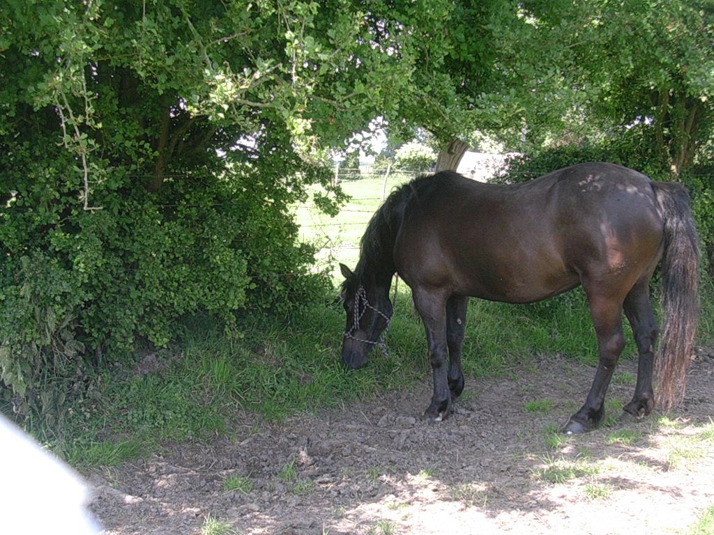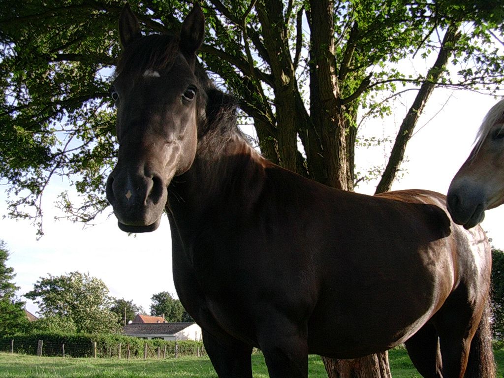 | Dire merci | ![]() j'ai un énorme maronier sous lequel mes juments se mettent loin du soleil. On voit le marronier derrière ma grosse, et dans le coin de la cour ou elles se tiennent normalement. dans le parc, il y a cerisier, noyer dans le parc du haut, pommier, prunier. rien n'est protégé, parce que si le cheval a à manger, il ne va pas pour l'écorce. il va manger principalement ce qui est au sol, pour les cerises, pruneau, pomme, et en dernier recours aller chercher sur l'arbre. pour l'écorce, le besoin de fibre se fait ressentir vers l'autonme et en hiver, quand l'herbe se fait rare, suffit de tendre un fil autour sur des piquets pour que le cheval n'ait pas plus près. perdu cet hiver mon tilleul qui faisait ombre couplé au marronier, aujourd'hui mes juments peuvent aller contre la clôture et se mettre sous la haie de lilas et sureau. soucis pour avoir un arbre assez haut et touffu pour protéger, c'est que ça prend du temps. |
