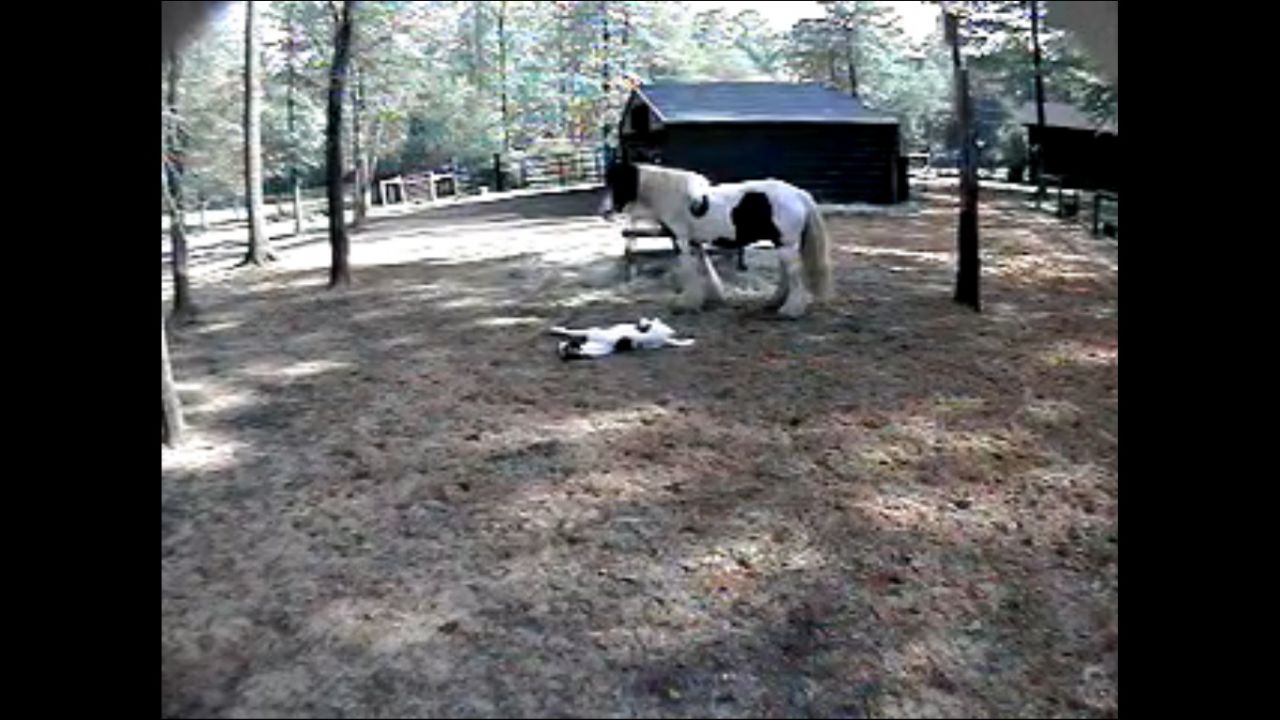 | Dire merci | Sur les caméras extérieures, on voit Tara et son poulain. il a la forme le petit machin Lien |