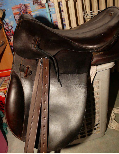 | Dire merci | j'y avais pensé car les cuirs (étrivières inclues) de la selle de Sap ont virés du london clair à cerise foncée mais au fil des années (j'ai la selle depuis 7 ans). Ici, je veux forcer le procésusici, en plus du SAPO, elles sont, via des supports, au niveau d'une fenêtre plein sud (oui, je sais j'ai des rideaux spéciaux) depuis 10 jours mais le soleil... y en a pas !! grmsplbbekmspe !!! |