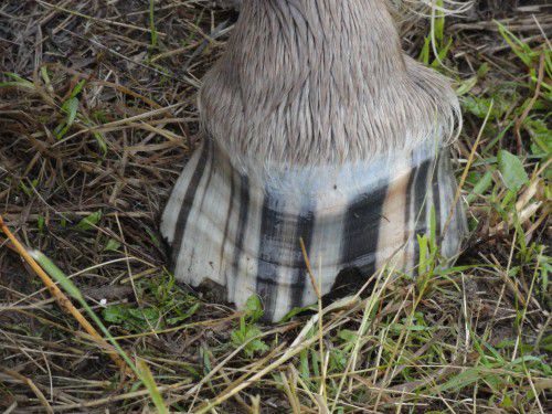 DéconnectéDire merci | Vu qu'elle a les pieds trop longs elle a dû se taper le postérieur contre le fer des antérieurs en s'amusant au pré. Ou bien il y a un gros caillou ou autre dans le pré contre lequel elle s'est cognée. |