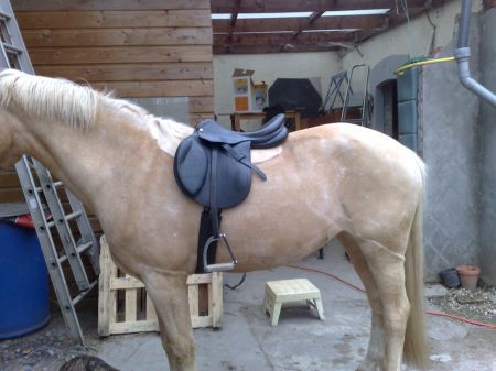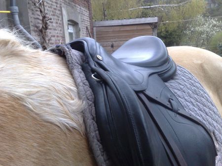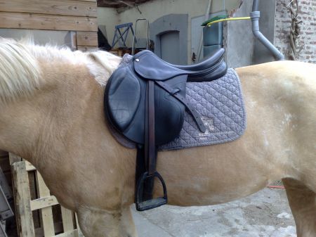 | Dire merci | Essai de la Pesoa Legacy 16,5 , vos avis sont bienvenus. La semaine dernière, j'ai essayé une 16 ' spéciale poney : un peu juste pour moi. Je tiens dedans,mais je ne sais pas si je serais à l'aire : les quartiers sont petits voilà une selle que j'ai à l'essai 7 jours elle a 4 ans, bon état (juste coutures usées aux bas de jambes où passent les étrivières, normal) Place aux photos : |