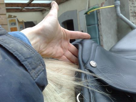 | Dire merci | oui ! je l'essaye demain monté! la selle me paraît bien coller partour, j'ai vérifié avec les 9 steps de Jochen schlese (mis en lien sur le post de PetiteJulie oui, l'épaule est libre (j'ai tiré l'antérieur vers l'avant, et fait "rotate" l'épaule) j'avais fait les traces pour voir si elle dépassait pas du rein : nickel. c'est une legacy achetée il y a 4 ans 1500 euros je l'ai à 800 bon, le prix n'est pas exceptionnel , c'est pas la super affaire, mais si elle convient à Muesli : que demander de mieux !! Demain, je saute, je dresse, etc...puis je met ici les traces de transpi. et voir comment Muesli bouge : si l'épaule est coincée : je le vois tout de suite : elle ne sait pas allonger ! 10 ans qu'on se connaît : elle ose me montrer quand elle est gênée !! EN tous cas : merci à vous !!! |