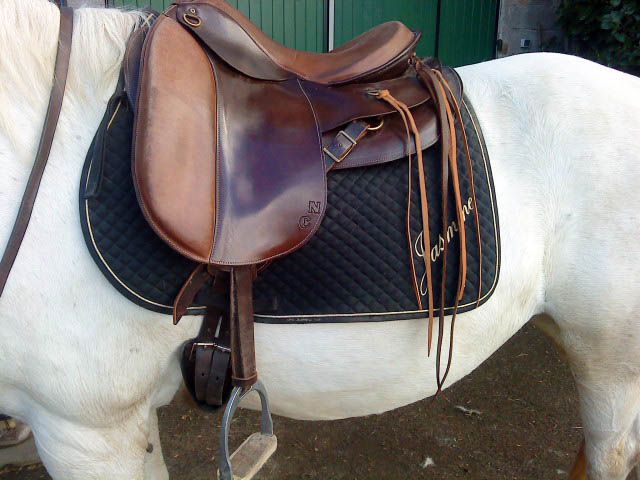 DéconnectéDire merci | Voilà, selle reçue, après quelques déboires avec la poste (le colis est arrivé complètement défoncé, à croire qu'un camion a roulé dessus mais ouf, la selle n'avait rien !Essayée hier : nickel Elle va pile poil à ma juju, et à moi aussi, quel confort !!! Seul petit truc : je monte en bottines (hauteur mi mollet) et ca le fait pas même avec les étrivières sous les quartiers, j'ai un frottement au niveau du bas du quartier, et à travers le quartier je sens l'épaisseur au niveau de la boucle de sanglage...Ceux qui montent avec cette selle, vous montez en bottes hautes / chaps obligatoirement ? Ou autre "astuce" ? Je vous ferai une ptite photo mardi, j'avais pas pris mon APN là ![]() |