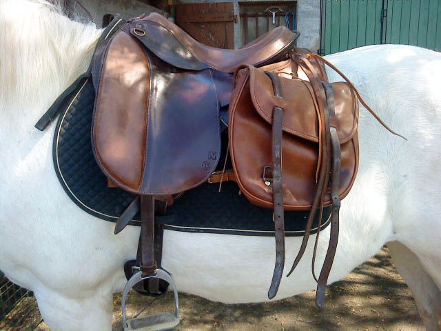 DéconnectéDire merci | Oui, encore un post sur les selles, j'ai vu qu'il y en avait déjà plein, mais j'ai pas trouvé réponse à toutes mes questions En fait je réfléchis à me racheter une bonne selle de rando. Sachant que je monte beaucoup en extérieur (balades de 2 à 4h tous les WE, et 1 à 2 fois par an, rando de 4-5 jours, avec des journées de 7h en selle, facile (ça, c'est quand on se perd pas )bref, jusque là j'ai une selle vaquera, top confort, mais pas tip top niveau bagagerie, c'est pas prévu pour (peu d'attaches, faut faire faire des sacoches sur mesure pour aller dessus, etc.). Bref jme tate pour une vraie selle de rando, les TH par exemple me plaisent pas mal. 1) Des avis sur cette marque ? Quel modèle pour ce que je veux faire ? (d'après le site, y'en a pas mal qui pourraient me convenir, moi j'aime bien la Arvène et la Trec...) 2) Je vois que ce sont des selles qui se font sur mesure (cheval ET cavalier)... alors peut-on en acheter d'occasion ? Comment on voit si elle va bien au cheval ? Par exemple, je vois cette annonce : Lien L'ouverture d'arcade a l'air super étroite non ? J'ai d'autres solutions que de trimballer ma jument pour aller l'essayer ![]() Taille 18p, pour moi qui fais plutôt du 17p, ça irait ? Si vous avez des avis sur cette annonce, je veux bien aussi d'ailleurs ![]() |