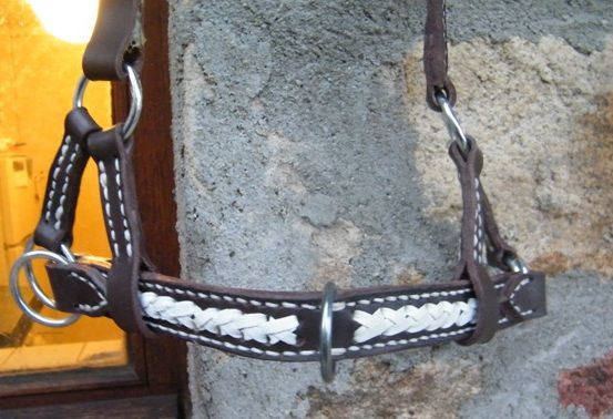| Dire merci | Ou même tu prends une ancienne muserolle que tu mets ensuite sur ton filet après modification. Une muserolle où tu rajoutes l'anneau qu'il te manque et où éventuellement tu doubles avec un morceau de cuir plus épais et large en dessous pour apporter de la rigidité. Le bout de métal n'est pas indispensable, non ? |