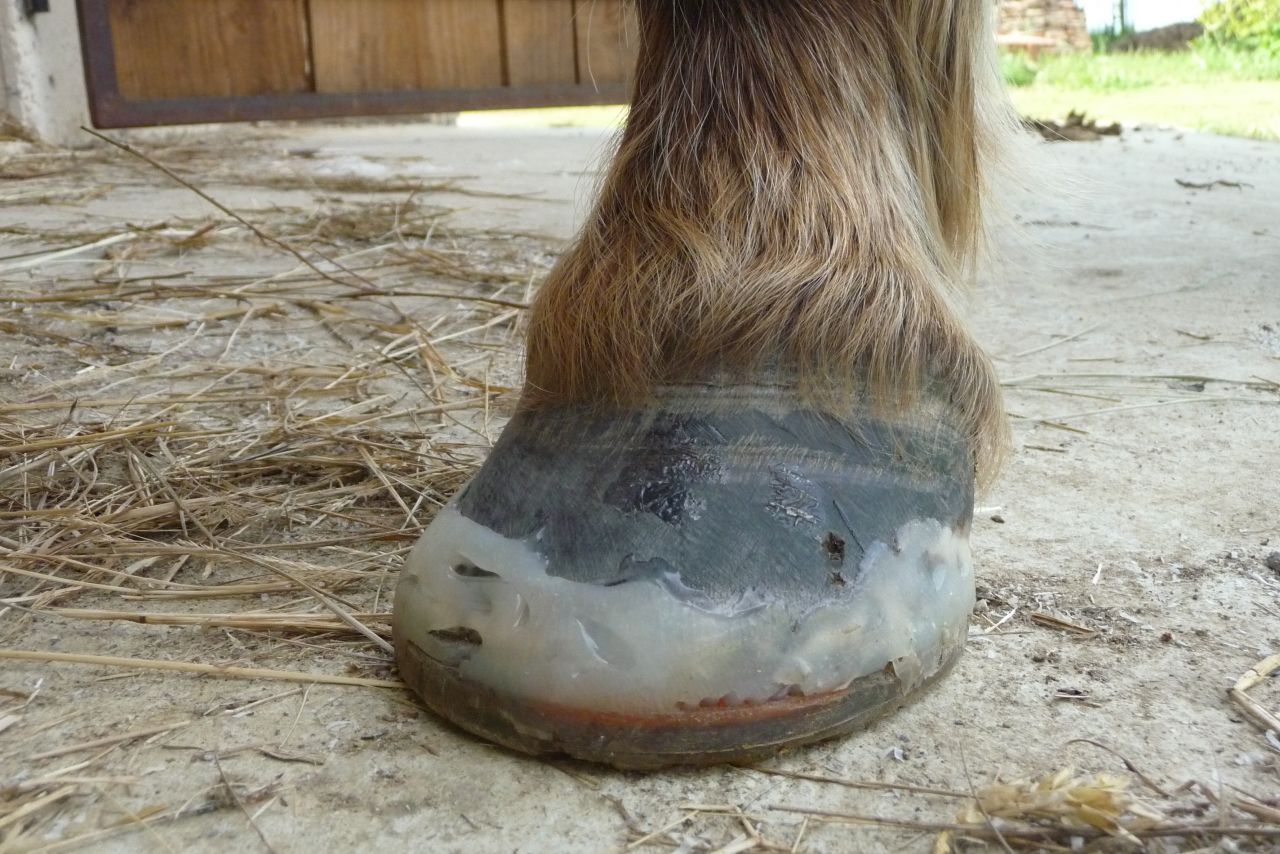 | Dire merci | J'ai également dû avoir recours au collage de fer sur ma jument après un déferrage en course (pontchateau 2010). Il n'y avait plus assez de matière pour clouer un fer. (c'est d'ailleurs suite à ça que je suis passée en Duplo) On avait ferré toute l'année 2010 en fer acier classique et silicone vettec avec un filet. (j'ai essayé les alu, mais pas assez résistant à l'usure). Dans le même temps où j'ai testé les Duplo, j'avais également utilisé un onguent de soin de nacricare qui a très bien fonctionné, le pied a vraiment bien poussé. C'est l'activateur de corne. Lien. Il faut faire une cure pour booster la croissance. Le cornecrusine marche assez bien, je massais le bourrelet tous les jours, mais je n'ai jamais eu cette pousse de corne. La biotine + de rekor est concentrée et donne de bons résultats : Lien |