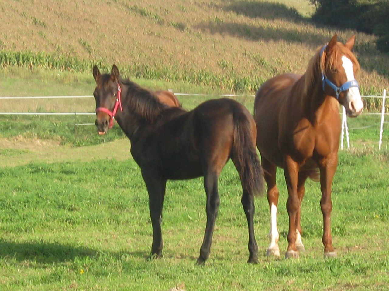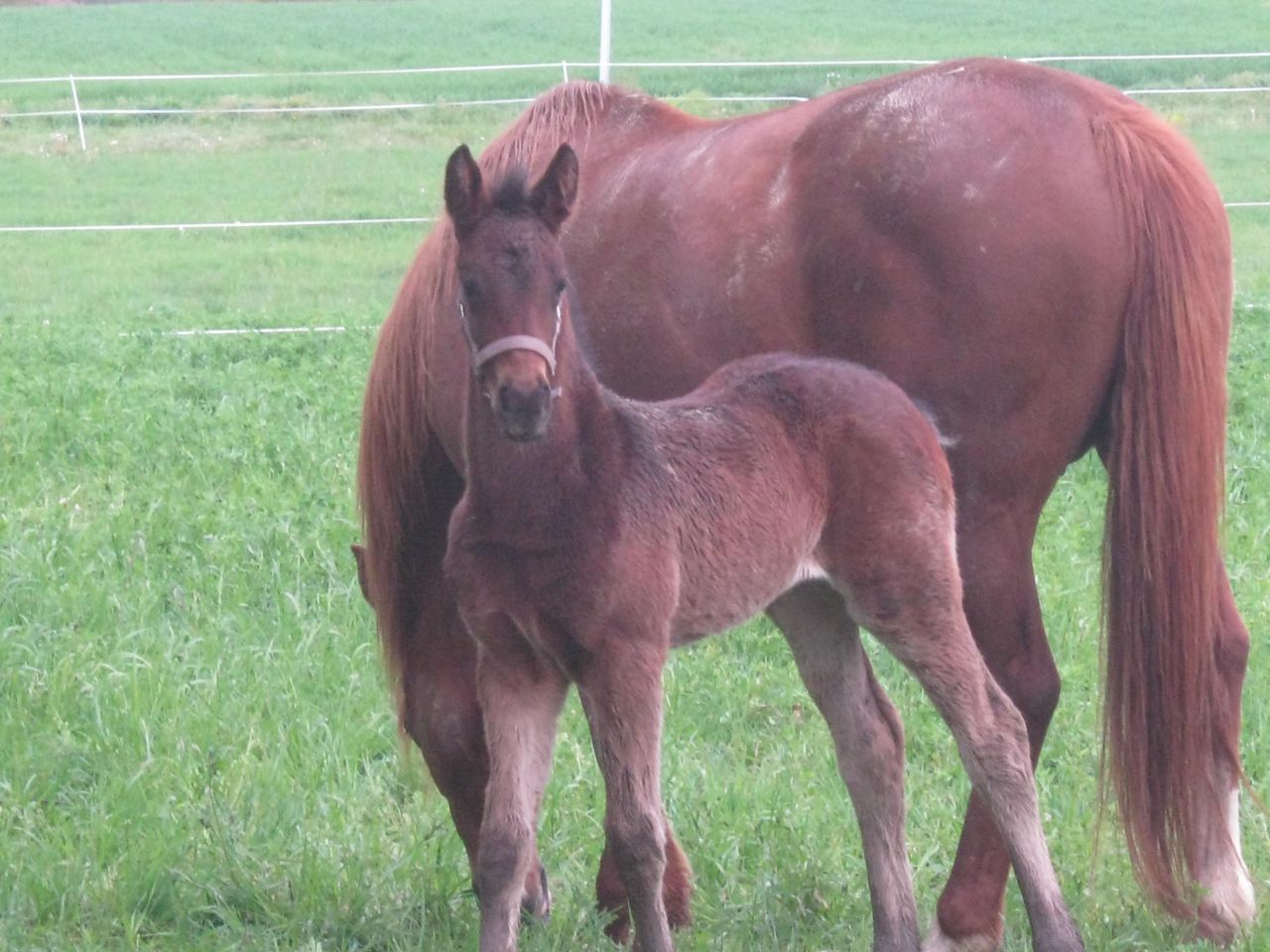 | Dire merci | La pouliche issue du croisement de ma jument AA et de mon frison est née le 5 avril dernier et ma foi, je la trouve plutôt réussie... [url=https://www.1cheval.com/membre/services/photos/images/158124.jpg] ![]() ![]() |