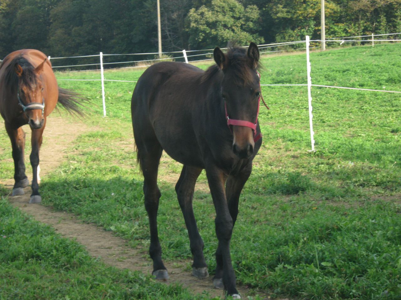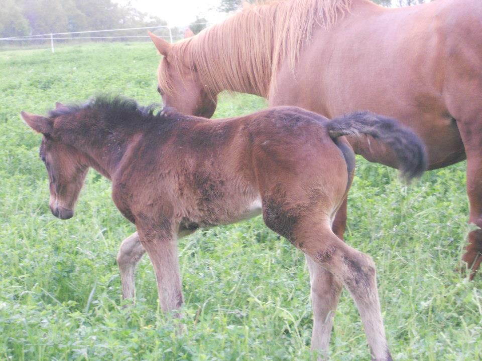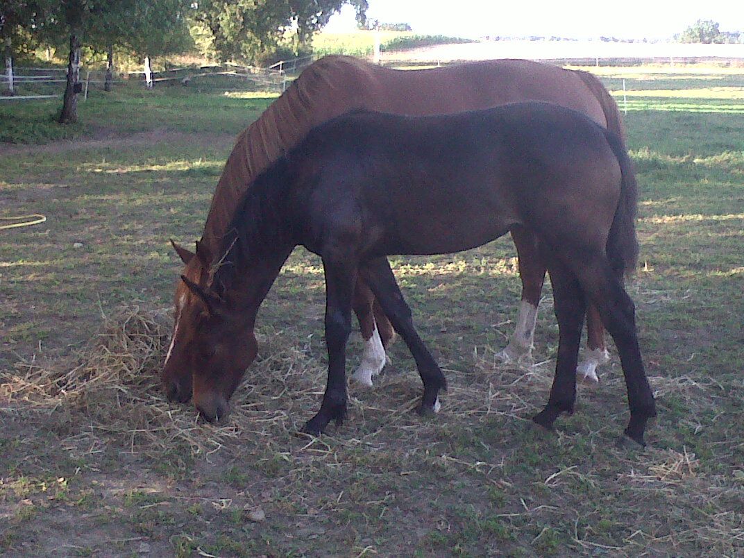 | Dire merci | tout a fait le genre de poulain qui me plait de l'os et de la rondeur en plus elle va foncer pour le peu qu'elle ait pris les allures du frison avec le sang de l'anglo....je serai jalouse ![]() |