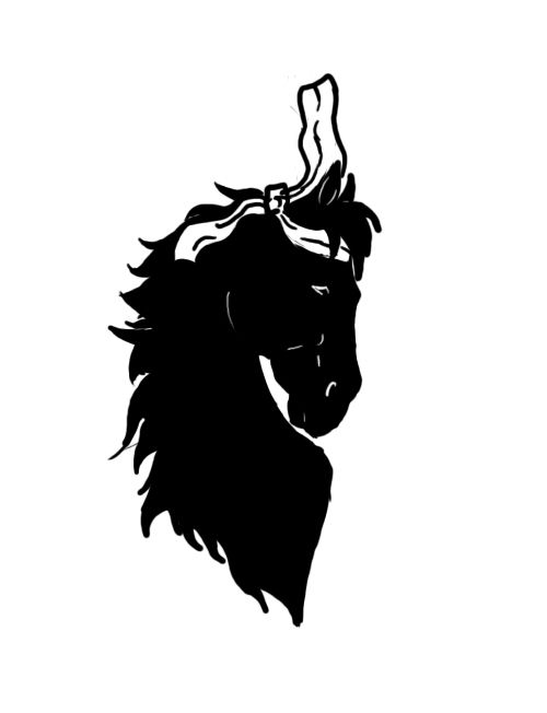 | Dire merci | Moi, j'aime beaucoup le premier; mais comme le dit jirist , tu pourrai peu être faire que l'on distingue, un peu plus le visage dans le cheval. Je ne sais pas, mais mettre le visage plus bas dans l'encolure???? ... Les deux autres, sont sympa aussi, mais je n'aime pas le graphisme de la tête de cheval, je trouve qu'il font trop BD, par apport au premier. |