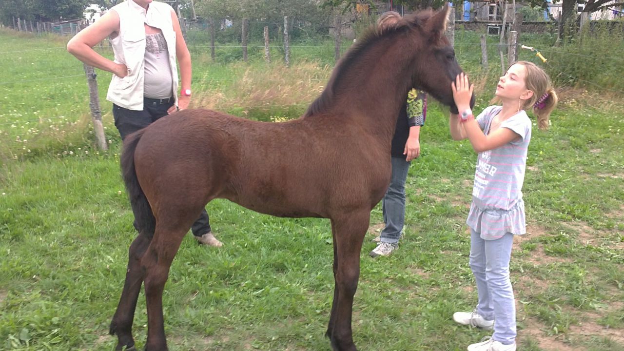 | Dire merci | ça y est me revoilà. après l'avoir tenu informé de mes intentions de cadeau qui s'est suivi de rigolades,pleurs ,divorce,remariage,passage dans la chambre,engueulade, on a pas assez d'argent et bisous ,repassage dans la chambre etc.. ( le tout en 2min 30) , on s'est mis d'accord,et nous sommes allé voir l'élevage à proximité de chez moi . et on est tombé sur ça : ![]() ![]() ce sont des gens très sympathiques,agriculteurs comme premier métier et qui ont une passion pour le frison(la propriétaire est hollandaise).il sont PP. et puis on s'est décidé : on a acheté la proprio! lol on s'est contenté d'un jeun poulain de 3 mois qu'ils ne nous donneront qu'après le seuvrage qui pour eux doit se faire à 6 mois et pas avant . donc on devra attendre novembre pour l'avoir . je ne sais pas ce que vous en pensez mais pour nous il a l'air bien . |