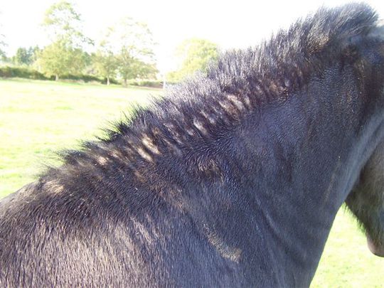 | Dire merci | Bonsoir, Nouveau soucis avec mon vieux qui vit actuellement au pré. (le pré est près des bois) Sa crinière était sensible depuis quelques temps, il aimait bien qu'on le gratte. Il y avait également quelques pellicules mais pas de rougeur. Il y a deux jours, j'ai trouvé ça au niveau du toupet : ![]() Et la crinière ![]() J'ai donc shampouiné l'intégralité de la crinière à la chlorexidine. Aujourd'hui, plus de pellicules, j'ai essayé de le regratouiller à la crinière : plus de réaction. Il n'a rien au niveau de la queue. J'appréhende beaucoup qu'il ai une dermite ou autre joyeuseté de ce genre. Qu'en pensez-vous ? Merci ! |