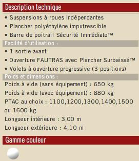 | Dire merci | Oui mais les équipements dont ils parlent cicitt, genre "sellerie", j'en veux pas. Mais je pense que cette différence de poids s'explique, en outre, par la matière du plancher. L'Ifor a un plancher alu alors que le fautras a un plancher en résine je crois. Message édité le 02/07/12 à 21:55 |