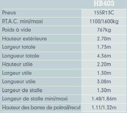 | Dire merci | Alors, d'ici 15jours j'achète mon Ifor Williams, le modèle HB401 Pepsi roule en Ifor depuis que je l'ai, en HB401 et en 2 places. Plancher bois, le mien sera en plancher alu.Je n'ai pas de grande expérience, mais j'aime l'orientation du pont avant (mon critère principal) mais aussi la texture antidérapante du sol. Le HB403 je ne connais pas, mais le mien est plus léger, il est à 1100kg en PTAC. En alu, super lumineux. Message édité le 02/07/12 à 21:15 |