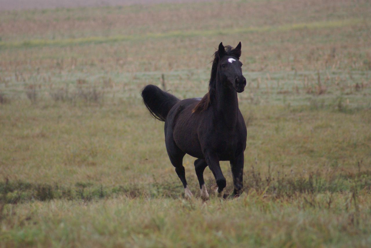 | Dire merci | "Ho, c'est bien un Pur-sang Arabe ?"![]() Non c'est un rocky Mountain horse. ![]() "Vous êtes sûre ? Mais il a de l'arabe ! " Pas du tout !! Enfin vérifiez ses papiers mais on peut remonter loin dans les générations et je n'ai pas encore vu d'arabe ! Venant d'un éleveur de PSA en plus ![]() |