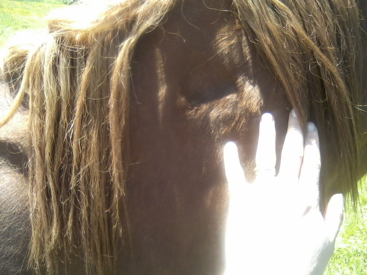 | Dire merci | Pyrame, suite à un choc, à a un trou aussi dans l'encolure... Et moi, suite à un accident de vélo, j'ai un creux dans le muscle de la cuisse... Ca ne nous gène ni l'un ni l'autre! |