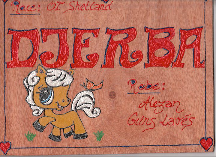 | Dire merci | j'en ai une aussi pour mon poney mais pas de photos de près j'essayerais de t'en faire sur le box il y a aussi pleins de plaques gagnées en concours par mes loulous |