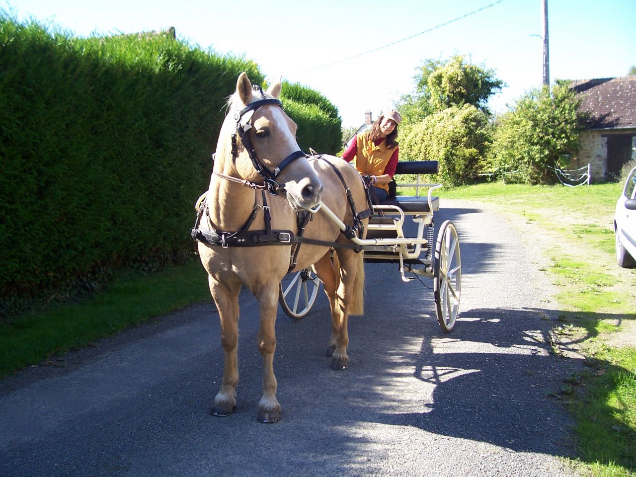 | Dire merci | Ben en fait je l'ai acheté débourré monté à l'élevage à 3 ans, il a été débourré attelé à 4 ans, il a fait 6 mois de très gentille sortie attelé 1 fois par semaine et après il c'est fait taper dans un jarret par son copain de pré et il a eu 1 an d'arrêt, je l'ai remis trèèèèès gentiment sous la selle en novembre et 4/5 fois dans les brancards, mais sans travail, juste comme ça, après y a eu l'hiver archi pourrave donc je l'ai vraiment repris qu'en mars, on peut dire qu'il n'a que 6 mois de boulot... |