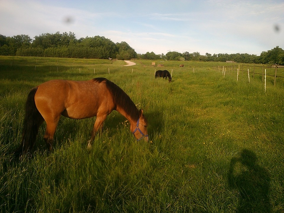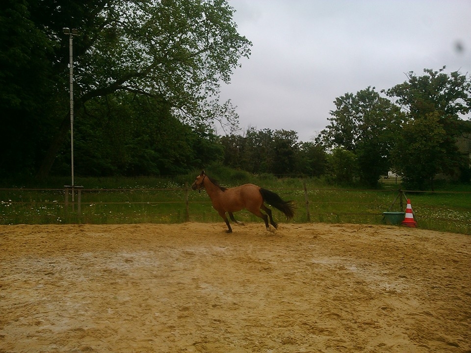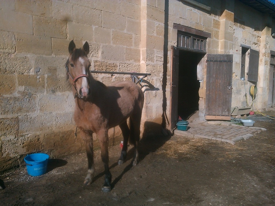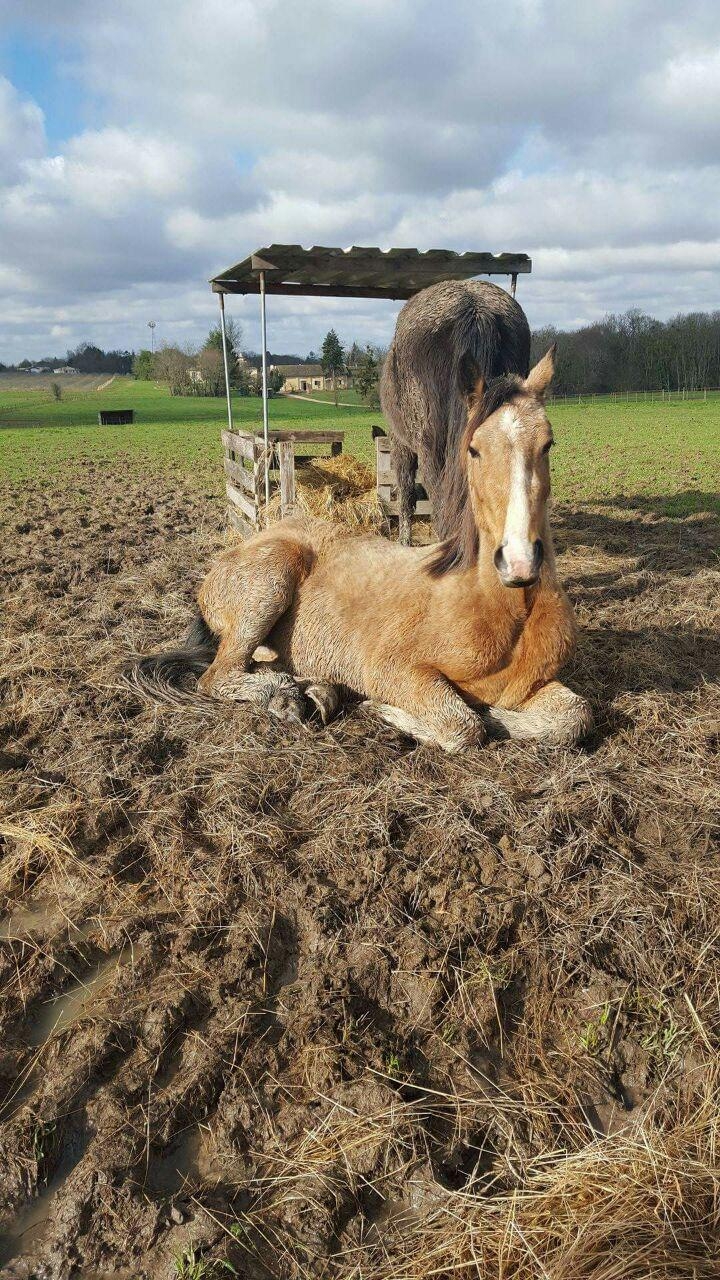 | Dire merci | un p'tit bonjour de devinette, premier rayon de soleil depuis des semaines.... du coup je l'ai sortie brossée, petit tour en main, séparation d'avec ma veille juju, puis tes ultime : je l'ai remise au pré et laissée seule, en enlevant ma juju pour la brosser a son tour.... galopades, hennissements, stops slidés a 2cm de la cloture et elle s'est calmée.... gagné! on va faire ça régulièrement pour qu'elle s'en fiche plus tard! ![]() |