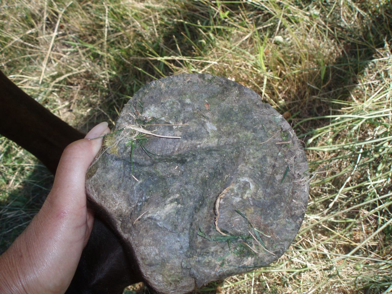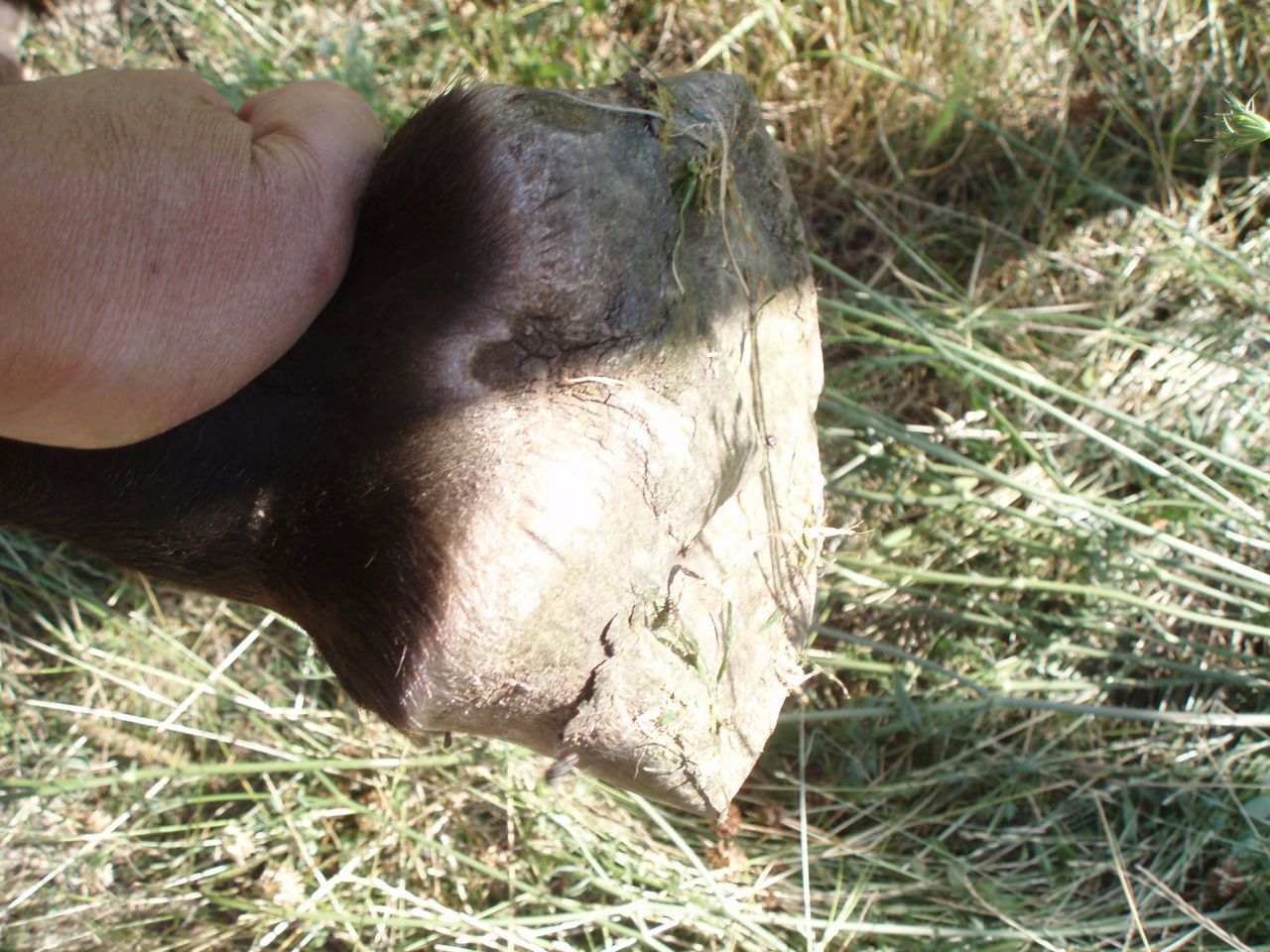 | Dire merci | Dans ce cas est ce que vous pensez objectivement qu'avec un bon parage très régulier on pourrait obtenir un peu de concavité au niveau de la sole et réduire l'évasement.J'ai passé un coup de râpe hier soir pour lisser les éclats,il est sage au parage et a une bonne qualité de corne.Ses aplombs sont bon,il n'y a pas de dommage de ce coté!La seime est barrée depuis 15 jours et ça ne bouge pas,j'aimerai vraiment le garder pied nu si c'était possible,merci pour tous vos conseils.Je refais des photos plus parlantes. |