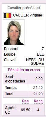 | Dire merci | La begle a fait 21 et quelque de pénalités! Pas trop mal je pense! Par contre ya moyen de voir l'ordre de passage + classement provisoire quelque part?? |