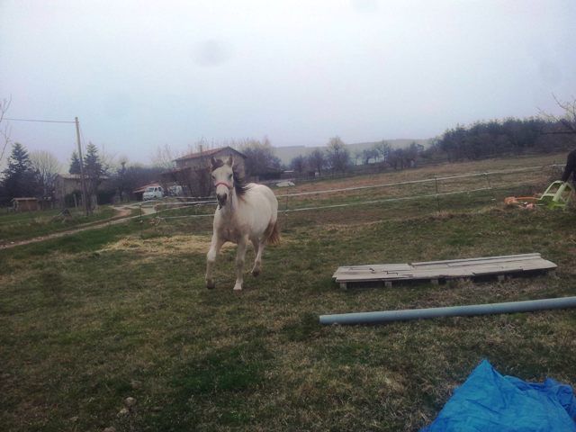 | Dire merci | Une des rares photos ou Horizon pose ![]() ![]() Si je en me trompe pas, il devient alezan crins lavé ![]() |