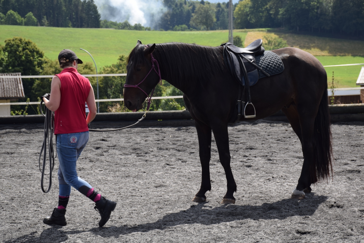 en longe elle marche très bien, en selle elle reste là sans bouger
