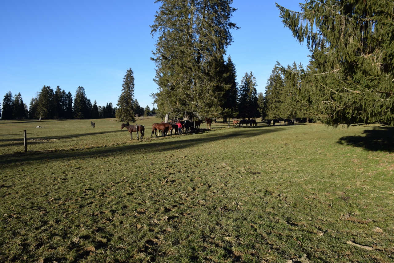 | Dire merci | Sinon, que dire ... il a grandi en troupeau dans les pâturages des Franches-Montagnes, au sein d'un groupe d'une 30aine d'entiers qui avaient entre 6 mois et 3 ans. Du coup, il a été très peu manipulé, mais on se rattrape bien depuis 3 mois Les pâturages : ![]() ![]() Les stabulations : ![]() |