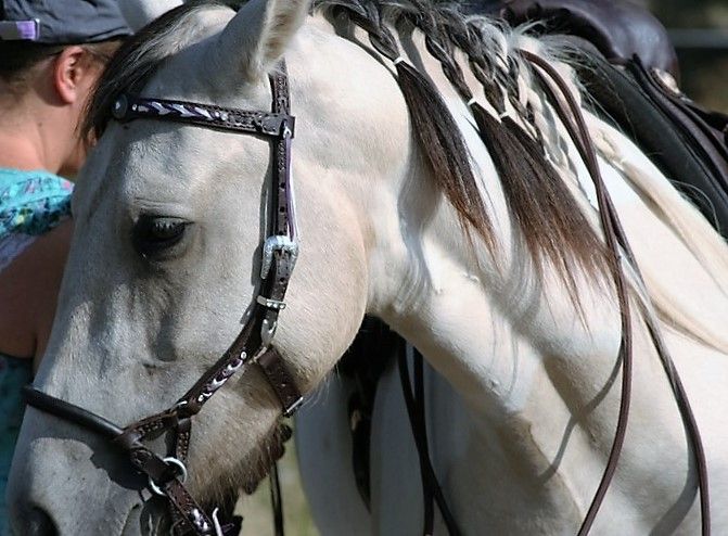 | Dire merci | Je suis d'accord avec ce qui a été dit au dessus, quand c'est son cheval, on est souvent plus précautionneux parce que peur de mal faire, avec les répercutions que ça peut avoir sur la relation etc. On se rend vite compte que l'état d'esprit dans lequel on se trouve va aussi conditionner la séance. Quand je me sens tendue, énervée , impatiente, ça n'est même pas la peine que je me lance à demander quoi que ce soit puisque je sais que ça sera contre productif. Je me contente de gratouilles calins pansage et demain est un autre jour ! Les blocages, c'est pas stupide. C'est simplement que ça n'est pas encore le bon moment pour vous 2 ![]() oui, c'est extactement ça, "guerrier mais fiable". Ma ponette était déjà comme ça, je l'ai toujours décrit comme mon "poney de guerre", mais c'était un coup de poker. @fedaia en parlera mieux que moi mais je leur fais confiance quand ils me disent que la lignée de Sakr et apparentés ont ça dans les gènes. Coté photo, pas grand chose.. Je monte seule et chez moi. Mais en voilà une petite histoire d'illustrer un peu quand même (oui, ça fait pas très joli mais j'ai gommé rapidos un fil de cloture lol ) ![]() |
