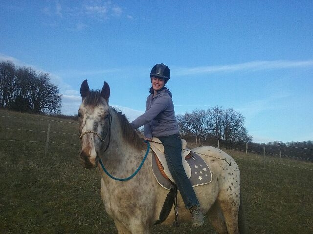 | Dire merci | Extra ta sortie. je suis un peu pareil en tant que cavaliere. Autant je gère à pied , autant à cheval il me faut un gentil avec du gaz mais qui ne s'effraye pas à la premiere feuille qui tombe , autrement je suis crispee. J'espere que Daisy va repondre à mes attentes. Pour l'instant , elle est un peu sur l'oeil mais en meme temps , elle n'a jamais rien vu . Donc la , mon boulot c'est de la sortir, qu'elle voit plein de choses et j'espere qu'elle va se detendre car dans le fond elle est plutot reflechie. |