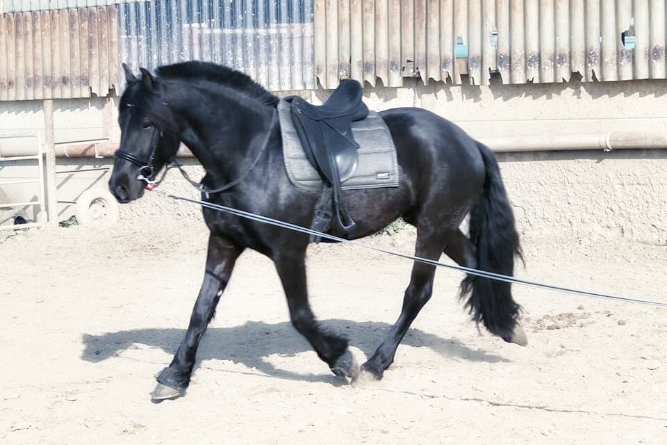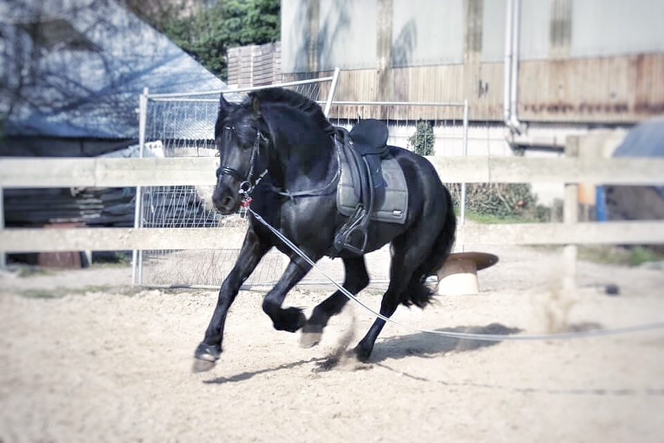 | Dire merci | Elle est mignonne ! Pour nous , aujourd'hui, petits cercles au trot c'est incroyable comment elle écoute à la voix.Avec elle , pas besoin de chambriere. Elle répond immédiatement à la voix. |