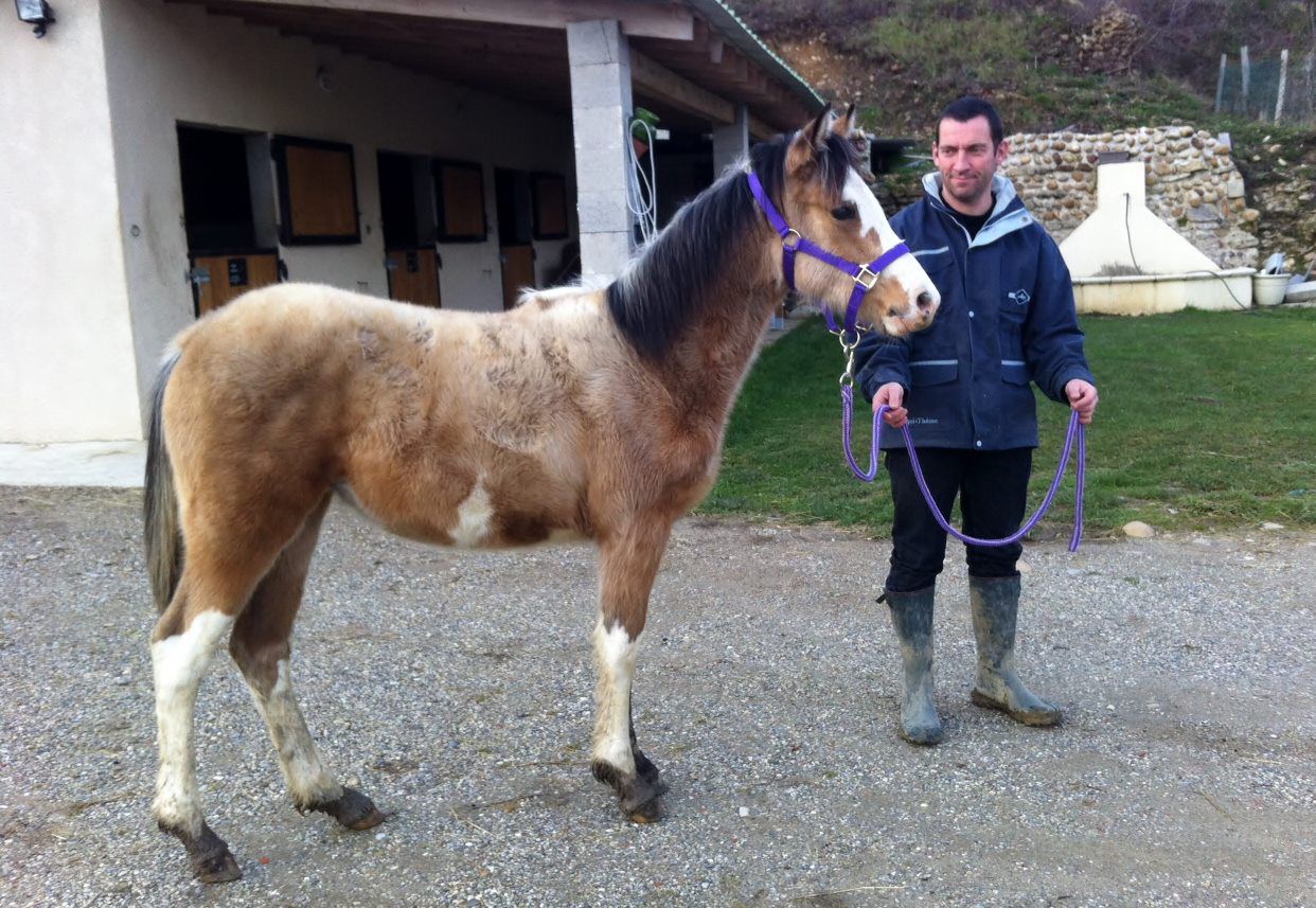| Dire merci | Voilà Horizon a vu le maréchal ferrant hier. Je dis vu car il était inquiet (c'est quelqu'un de nouveau qui en plus veut lui prendre les pieds). Donc le MF a surtout laissé Horizon faire connaissance (sentir, se laisser caresser) sans le licol et moi en retrait. Il a réussi a nettoyer les antérieurs et a vu un défaut sur l'antérieur gauche (sabot cassé au niveau du talon). Si ce n'est pas corriger dans l'année, il y a un risque de développer un pied bot sur l'antérieur droit et pied plat pour le gauche. Il me conseil de faire un parage complet et correctif lors de la castration, quand Horizon sera endormi (comme çà pas de stress et travail bien fait avant la mise au pré) |