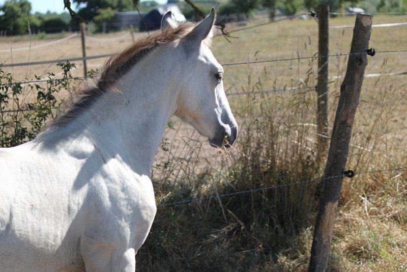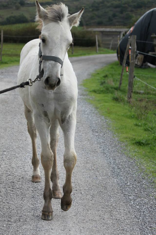 | Dire merci | Chez nous les deux "D" partent en balade toute seule comme des grandes! Pas le choix je suis aussi toute seule ... Au début pour les rassurer j'emmène toujours une longue longe (au cas où ) et un bon seau de grains à chaque fois qu'elles sont calmes et posées elle en reçoivent une poignée, quand elles s'arrêtent sans broncher, une poignée ... Et au moins si elles réussissent à m'échapper, je sais qu'au grain, elles ne résistent pas ![]() ![]() Diorita, 8 mois, cremello champagne. ![]() Et Danaé, 11 mois, hispano-fjord. On attend la réparation du van pour retravailler ça avec les 2 ptites ... Mais aucun soucis pour licoler/rester à l'attache/se laisser panser. Danaé (née chez moi) donne les pieds, Diorita est encore trop sensible, on va désensibiliser les membres au touché du stick pour l'instant ... |
